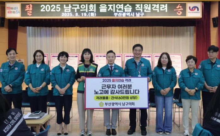 부산광역시 남구의회는 8월 19일 ‘2025 을지연습’이 진행 중인 남구청 종합상황실을 방문하여 훈련 상황을 참관하고 현장 근무자들을 격려했다.