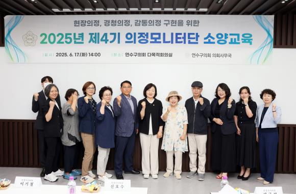 인천광역시 연수구의회는 17일 오후 2시 연수구의회 1층 다목적회의실에서 2025년 제4기 의정모니터단 소양교육을 실시했다.