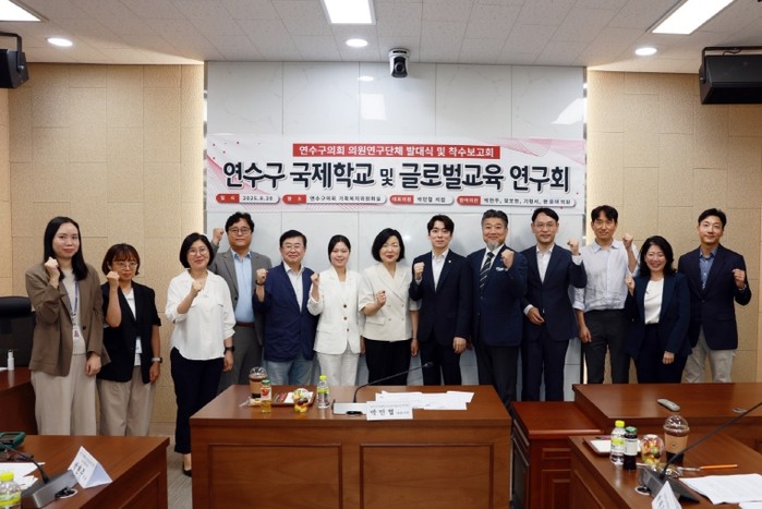 연수구의회 의원연구단체인 '연수구 국제학교 및 글로벌 교육 연구회'가 지난 8월 20일 발대식 및 착수보고회를 개최하고 본격적인 연구 활동에 돌입했다. 연구회는 박민협 운영위원장이 대표의원으로 박현주 의장, 정보현 자치도시위원장, 기형서 운영위원회 부위원장, 편용대 의원이 함께 참여한다.