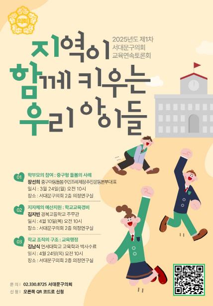 이번 토론회를 주최하는 서대문구의회 김규진 의원은 “불안정한 시국에 교육과 관련된 의제가 모두 묻히고 있다. 지역사회 안에서 학교를 바라보는 관점으로, 학부모이자 주민인 ‘우리 아이들’을 위한 서대문을 함께 만들 수 있다는 취지에서 2024년부터 이어온 교육연속토론회를 지속해오고 있다” 며 “이번 토론회가 지역 내에서 아이들을 함께 키워나가는 여러 주체가 함께 머리를 맞대고 소통할 수 있는 자리가 될 것으로 기대한다”고 밝혔다.