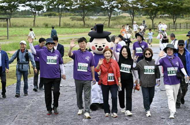 ▲ 이민근 안산시장(왼쪽 두번째)이 대부포도축제 둘째 날인 20일 대부해솔길 걷기대회에 참여하고 있다. |