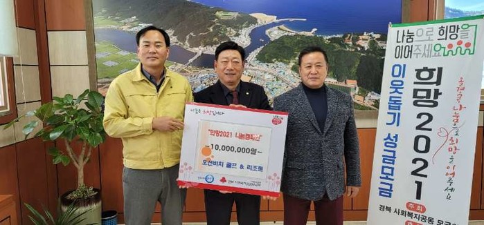 영덕군 강구면 오션비치 골프&리조트 조재관 대표이사가 지난 15일 강구면사무소를 찾아 희망2021 나눔 캠페인에 성금 1천만원을 기부했다.