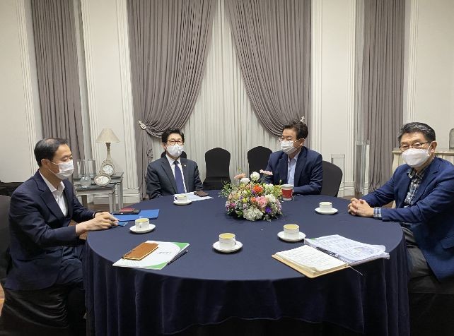 이철우 도지사·장욱현 영주시장 환경부장관에 영주댐 조기정상화 건의 (환경부장관과 면담중인 장욱현 시장 모습 (왼쪽부터 김동진 ~