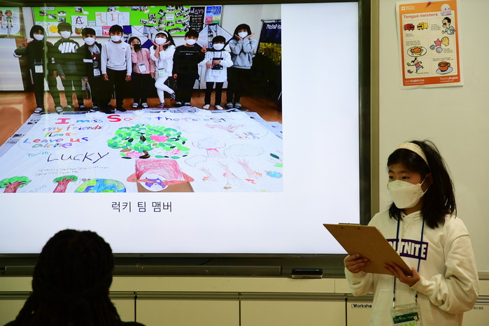 마지막으로 진행된 토론 및 발표 활동에서는 친환경 영어캠프의 교육적 효과가 돋보였다. 아이들은 환경을 어떻게 지킬 것인지 함께 토론하고 팀별 프로젝트를 수행해 PPT로 발표했다. 단순히 영어를 배우는 지식교육을 넘어 환경에 대한 서로의 생각을 공유하며 세상에 대한 가치와 태도를 내면화하는 과정이었다.