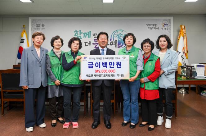 부여군 세도면 새마을지도자협의회·부녀회는 지난 1일 부여군청을 방문하여 인재 육성을 위한 장학금 2백만 원을 (재)부여군굿뜨래장학회에 기탁했다.