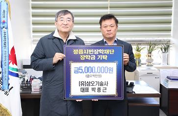 | ▲ 따뜻한 위로를 나눔으로...삼오기술사 박종근 대표, 정읍시에 장학금 기탁 |