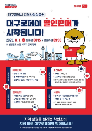 ‘대구로페이’ 8월 1일부터 7% 할인, 인당 월 50만 원 한도…