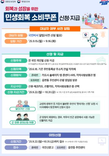 김명구 경제과장은 “이번 2차 민생회복 소비쿠폰이 명절과 연말을 앞두고 시민들의 생활 안정에 작은 보탬이 되길 바란다”며 “신청 기간과 방법을 꼭 확인하시고, 많은 시민들이 혜택을 받을 수 있도록 적극 참여해 달라”고 말했다.