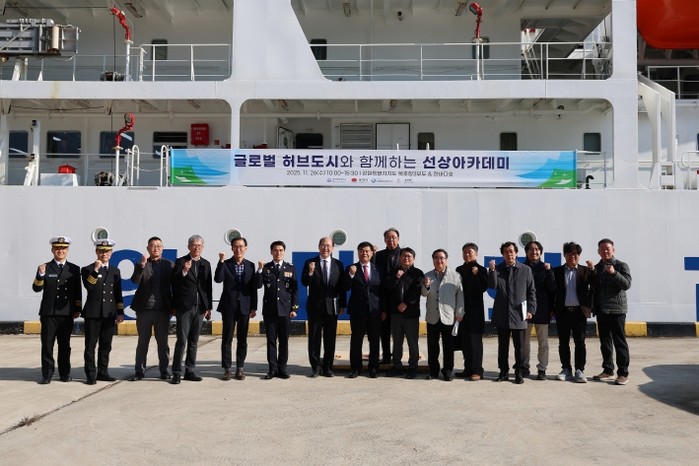 동해시는 11월 26일, 묵호항에 정박한 국립한국해양대학교 실습선 한바다호에서 ‘글로벌 허브도시와 함께하는 선상 아카데미’를개최했다.