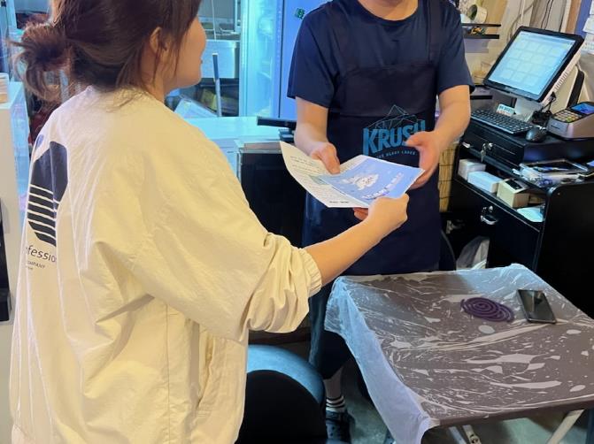 ▲ 구 직원이 영업자 준수사항 홍보물을 배부하고 있다. |