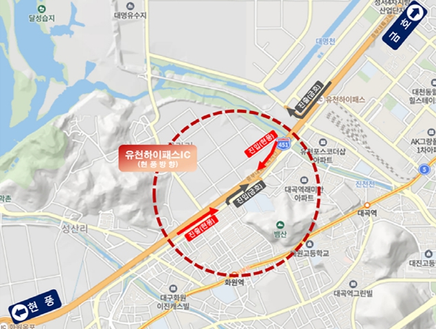 2018년 개통된 금호방향 유천하이패스IC는 예측치를 두 배 이상 웃도는 교통량(6,900→18,400대/일)을 기록하며, 대구 서·남부권의 주요 관문으로 자리매김했다. 최근 성서·월배·화원 지역의 인구 증가와 산업 수요 확대로 출퇴근 시간대 혼잡이 늘어나면서, 현풍방향 진입로 추가 확보는 지역 주민들의 최우선 요구사항이었다.