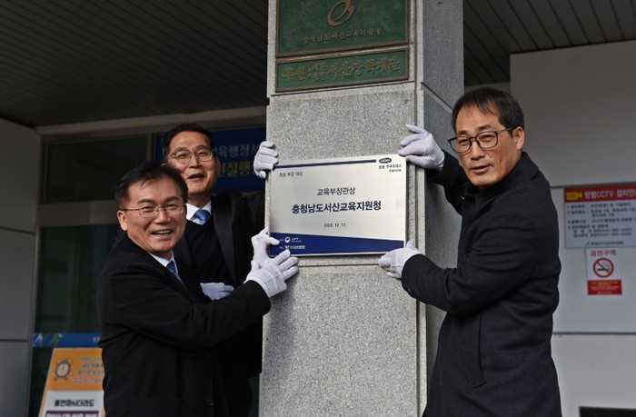 충청남도서산교육지원청은 1월 9일 오전 11시 20분, 교육지원청 본관 입구에서 교육부 주관 ‘늘봄·방과후학교 우수사례 기관’ 전국 대상 수상을 기념하는 현판식을 거행했다.