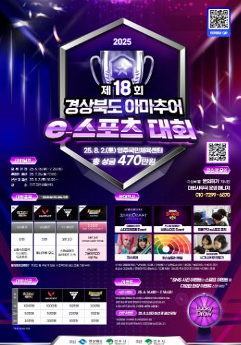 영주시는 전국 아마추어 게이머들이 참여하는 ‘2025 제18회 경북 아마추어 e스포츠대회’를 오는 8월 2일 영주국민체육센터에서 개최한다고 밝혔다.