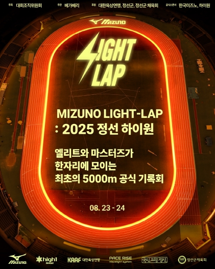 정선군은 오는 8월 23일부터 24일까지 국내 육상 역사에 새로운 장을 여는 ‘미즈노 라이트랩 2025 정선 하이원대회’를 정선종합경기장에서 개최한다고 밝혔다.