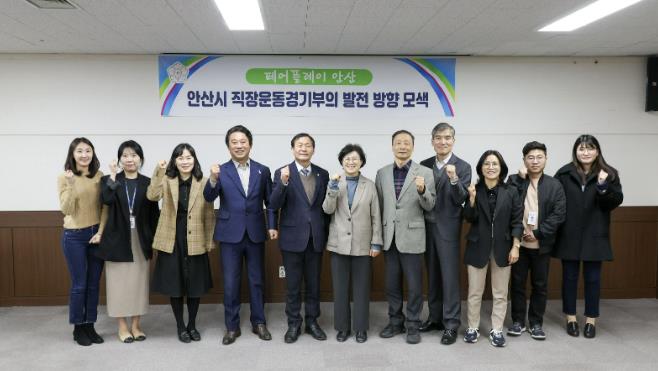 이날 간담회에는 페어플레이 안산 소속의 박은경, 박태순, 한명훈, 한갑수 의원과 시 체육진흥과장 등이 참석해 안산시 직장운동경기부의 운영 현황을 공유하며 향후 연구 방향과 활동 계획을 논의했다.