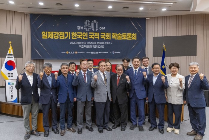 김명희 의장은 “광복 80주년을 맞아 식민 지배의 본질과 민족 정체성을 되짚는 뜻깊은 자리에 함께하게 되어 큰 영광이다. 강도한테 우리집이 강탈당했다고 강도가 우리 부모가 될 수 없듯이, 일제강점기 한국인의 국적이 일본인이 될 수는 없다. 이런 어리석은 질문이 다시는 반복되지 않기를 희망한다”며 “우리 역사에 대한 올바른 이해와 인식을 바탕으로, 지방의회도 시대적 책임을 다해 나가겠다”고 밝혔다.