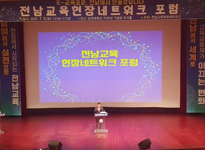 전라남도의회 김정희 교육위원장은 2025년 7월 5일 순천대학교 70주년 기념관 우석홀에서 열린 ‘전남교육 현장네트워크 포럼’에 참석해, 전남교육의 미래와 혁신을 위한 강한 의지를 밝혔다.