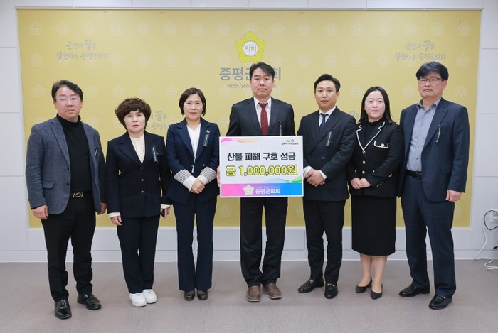 증평군의회는 2일, 최근 경북·경남 등지에서 발생한 대형 산불 피해 복구와 이재민 지원을 위해 희망브리지 전국재해구호협회에 성금 100만 원을 기탁했다.
