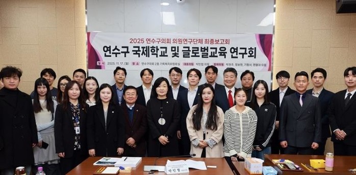 연수구의회 의원연구단체인 '연수구 국제학교 및 글로벌교육 연구회'(대표의원 박민협)는 2025년 11월 17일, 연수구의회 기획복지위원회실에서 최종보고회를 개최했다.