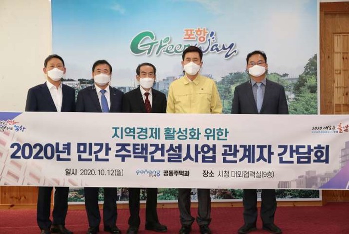 포항시는 12일 시청 회의실에서 지역경제 활성화 및 지역건설 산업 경쟁력 강화를 위해 착수를 앞둔 민간 공동주택 시공사 대표와 간담회를 가졌다.
