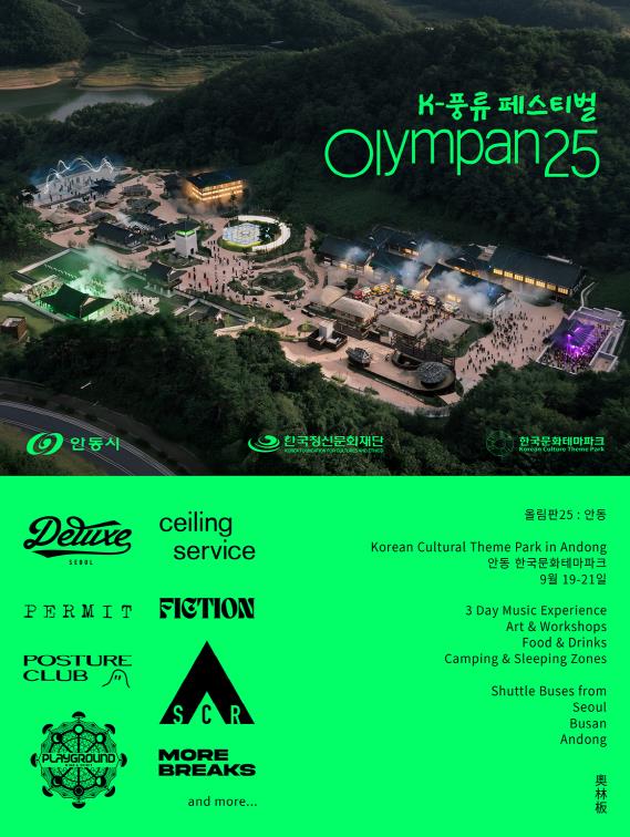‘올림판’은 고양과 초월, 놀이와 무대를 의미하며, 전통과 현대, 사색과 해방이 교차하는 열린 축제의 장을 뜻한다. 이번 행사는 지난해 큰 호응을 얻었던 산성마을 DJ 페스티벌에 이은 두 번째 EDM 행사로, 안동호를 배경으로 한 한국문화테마파크에서 펼쳐져 특별한 경험을 선사할 예정이다.
