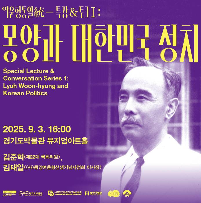 경기문화재단 경기도박물관과 몽양기념관은 광복 80주년 기념 특별전 《여운형: 남북 통일의 길》의 연계 행사로 ‘여운형 통일 특강&토크 Ⅰ: 몽양과 대한민국 정치’를 오는 9월 3일 오후 4시, 경기도박물관 뮤지엄아트홀에서 개최한다.