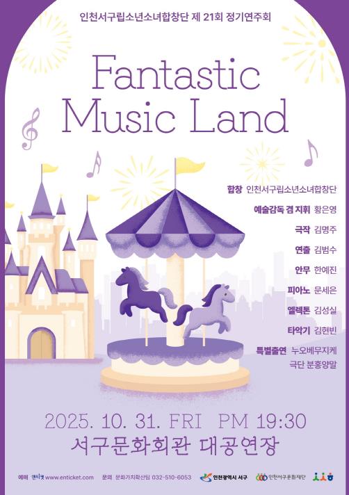 인천서구립소년소녀합창단이 오는 10월 31일 오후 7시 30분, 서구문화회관 대공연장에서 제21회 정기연주회 ‘Fantastic Music Land’를 개최한다.