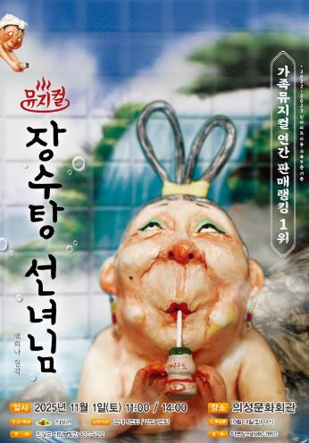 의성군은 오는 11월 1일, 의성문화회관에서 어린이뮤지컬 『장수탕 선녀님』을 오전 11시와 오후 2시, 총 2회에 걸쳐 공연한다고 밝혔다.