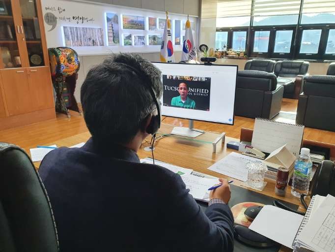 ▲ 영양군-미국 애리조나 투산시, 온라인 화상수업 운영하는 모습
