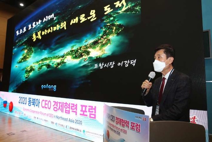 마지막 발표자로 나선 이강덕 포항시장은 ‘포스트 코로나 시대, 동북아시아의 새로운 도전’이라는 주제로 팬데믹 위기 극복을 위해 동북아시아 협력의 지평을 넓혀갈 것을 강조했다. 또한, 동북아 신(新)물류체계 구축, 디지털 전환 협력, 동북아 지방도시 방역협의체 조성 등 다양한 사업방안을 제안했다.