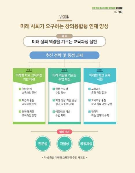 첫 번째 전략으로 미래 교육 패러다임 변화에 따른 미래형 학교 교육과정 기반을 마련한다.