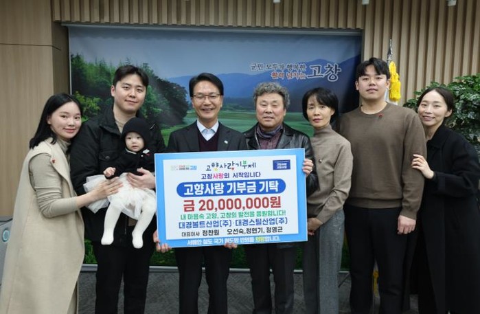 고창군 ㈜대경스틸산업, ㈜대경볼트산업 정찬원 대표와 가족들이 1월27일 고창군청을 찾아2000만원의 고향사랑기부금을 전달했다.