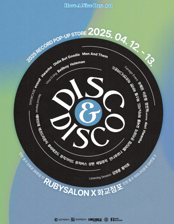 인천광역시와 인천관광공사는 4월 12일부터 13일(일)까지 ‘Have A Nice Day #11’ 뮤직 페스티벌과 연계하여, 개항장 내‘옛 화교점포’에서 '2025 레코드 팝업스토어'를 한다고 밝혔다.