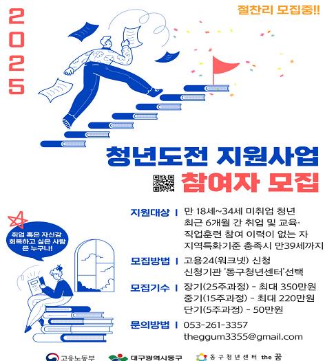 대구 동구청은 ‘2025년 청년도전 지원사업’ 참여자를 모집하고 있다.