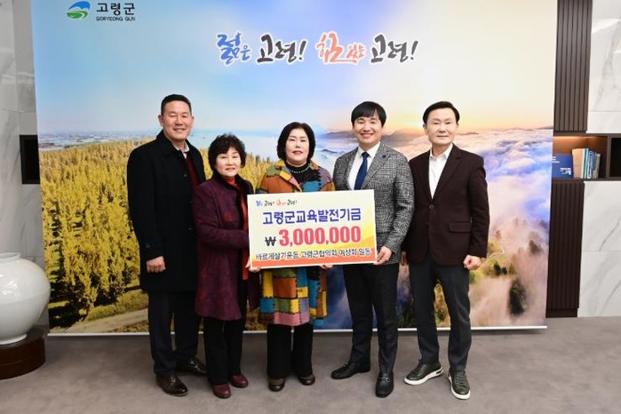 바르게살기운동 고령군협의회 여성회에서 2월 4일 고령군청을 방문하여 지역의 교육 발전과 인재 양성을 위해 사용해 달라며 교육발전기금 300만원을 기탁하였다.