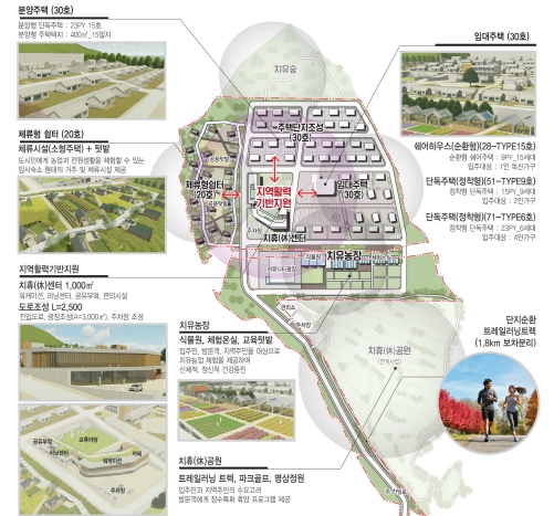 장수군 “장수치휴(休)마을 조성사업”은 장수군 장수읍 노하리 788-7번지 일원 79,845㎡의 부지에 장수군의 산악관광산업인 트레일레이스, 농군사관학교 등과 연계한 이주 수요에 대비하기 위해 국비 90억원 포함 사업비 301억원을 투자하여 단독주택 60호, 체류형쉼터 20호 등 총 80호를 분양(주택 또는 토지) 또는 임대 등의 방식으로 공급할 계획이다.