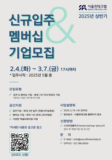 | ▲ 2025년 상반기 서울핀테크랩 입주기업 모집 포스터 |