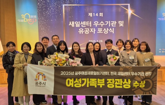 공주시는 지난 28일 여성가족부 주관으로 열린 ‘제14회 새일센터 우수기관 및 유공자 포상식’에서 공주여성새로일하기센터가 우수기관으로 선정되어 여성가족부 장관상을 수상했다고 밝혔다.