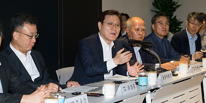 ▲23일 최종구 금융위원장이 성남시 분당구 판교역로 카카오뱅크에서 핀테크 생태계 활성화를 위한 현장간담회를 열어 인터넷전문은행과 핀테크기업의 협업사례를 듣고 활성화 방안을 논의하고 있다. <사진=금융위원회 제공> |