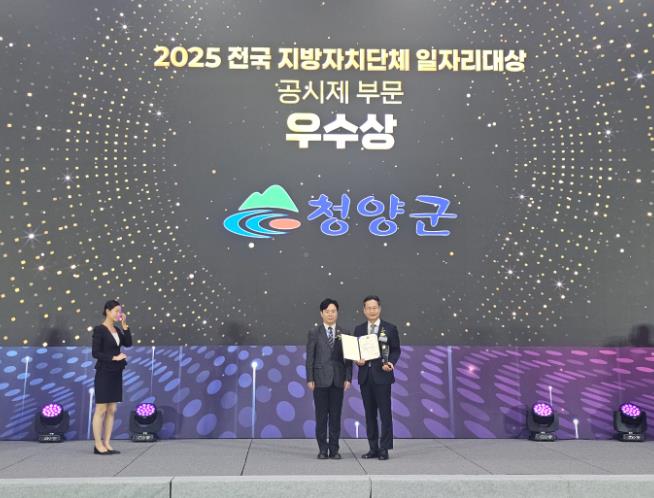 청양군은 지난 30일 청주오스코 2층 그랜드볼룸에서 열린 고용노동부 주관 ‘2025 전국 지방자치단체 일자리대상’ 공시제 부문에서 우수상을 수상했다고 밝혔다.