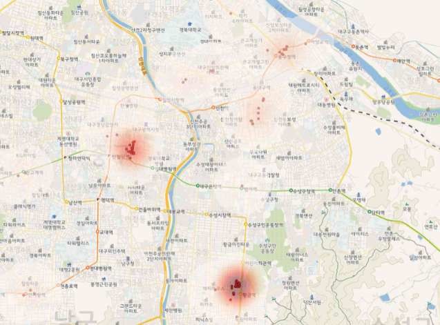 집중관리 대상 위생업소는 대부분 인구 유동량이 많고 교통접근성이 좋은 반월당, 동성로 쇼핑센터, 백화점 주변 지역에 위치해 있었다.특히, 20~30대 유동인구량이 많은 동성로 클럽골목에 위치한 유흥주점과 학원가, 대학교 인근에 위치한 PC방, 동전노래방은 보다 세밀한 방역 예방 활동이 필요한 것으로 분석됐다.