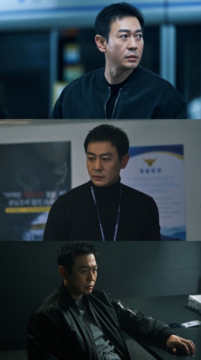 단단히 굳은 표정과 매서운 눈빛 속에서는 잔뼈 굵은 베테랑 형사의 카리스마는 물론, 깊은 고뇌와 의심이 뒤섞인 내면까지 드러나 장태구의 다층적인 매력을 온전히 보여준다.