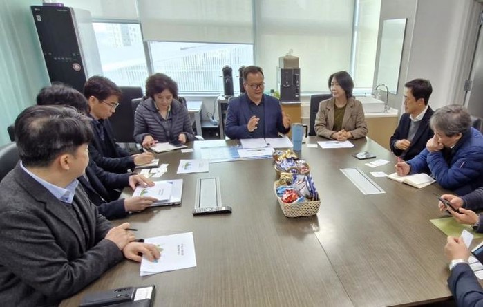 경기도의회 도시환경위원회 임창휘 의원(더불어민주당, 광주2) 10일 도시환경위원회 소회의실에 물순환 도시 조성을 논의하기 위해 이병숙 의원(더불어민주당, 수원12)과 경기주택도시공사와 (사)경기도물산업협회 관계자가 참석한 가운데 정담회를 열어 물순환 관련 기술의 전반적인 현황을 듣고, 적용 가능한 기술에 대한 의견을 교환했다.