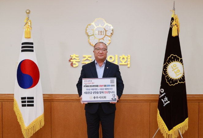 충주시의회 김낙우 의장이 31일, 이상설 선생의 서훈을 대통령장(2등급)에서 대한민국장(1등급)으로 격상하자는 취지의 ‘이상설 선생 서훈 승격 염원’ 릴레이 캠페인에 참여하며 뜻을 모았다.