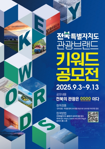 이정석 전북특별자치도 문화체육관광국장은 “이번 키워드 공모전은 도민과 관광객이 직접 참여해 전북 관광의 새로운 이미지를 함께 만들어가는 첫걸음”이라며, “누구나 공감할 수 있는 매력적인 브랜드를 구축해 전북관광의 경쟁력을 높이고 지역경제 활성화로 이어질 수 있도록 최선을 다하겠다”고 밝혔다.