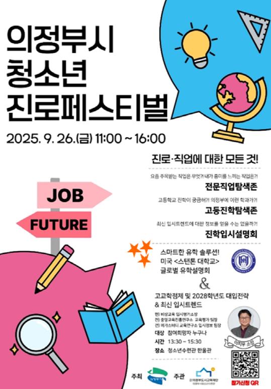또한 진로페스티벌 현장에서 동시에 운영되는 ▲진로·학습 체험 부스 ▲전문가 진로 상담 코너와 함께 청소년들에게 실질적이고 유익한 정보를 제공할 예정이다. 사전 신청자뿐 아니라 현장 방문자도 참여할 수 있어, 누구나 글로벌 진학과 진로 탐색의 기회를 누릴 수 있다.