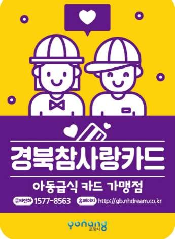 또한, 아동급식카드(경북참사랑카드) 사용처를 확대하여 아동의 선호에 따라 다양한 급식을 선택할 수 있도록 아동급식카드 가맹점도 모집 한다.