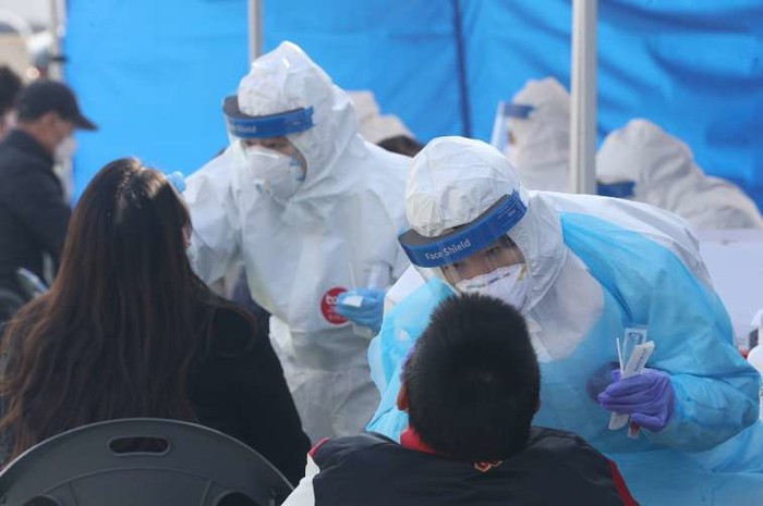 ▲ 구룡포읍 긴급 선별진료소에서 읍민들이 검체검사를 받고 있다.