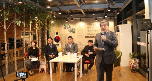 송 의장은 “여행 전 커다란 결단을 내린 세 분에게 도전과 여행의 기록을 담은 책을 펴내면 축사가 아닌 사회를 맡는 것으로 선물하겠다고 약속했었다”면서 “142명의 도의원을 대표해 약속을 지키는 의원의 모습을 이 자리에서 보여드리기 돼 기쁘다”고 밝혔다.