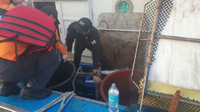 29일 울진해경이 침수선박 A호에 승선하여 배수 작업을 실시했다